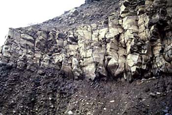 上部に挟まる溶岩流.雲ノ平火山の活動が始まった.