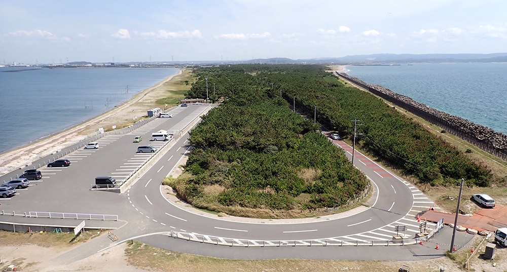 (北緯:35.312744、東経:139.784567)東京湾に突き出した砂嘴の先端、富津岬。沖合には三浦半島が見える。岬のすぐ沖合には明治から大正にかけて造成された人工島に砲台を備えた要塞、第一海堡、さらに沖に第二海堡が見える。岬一帯は千葉県立富津公園として整備されており、「日本の白砂青松100選」や「関東の富士見百景」に選定されているが、さすがに真夏の真昼には富士山はなかなか見えない。次は冬に訪れたいところだ。