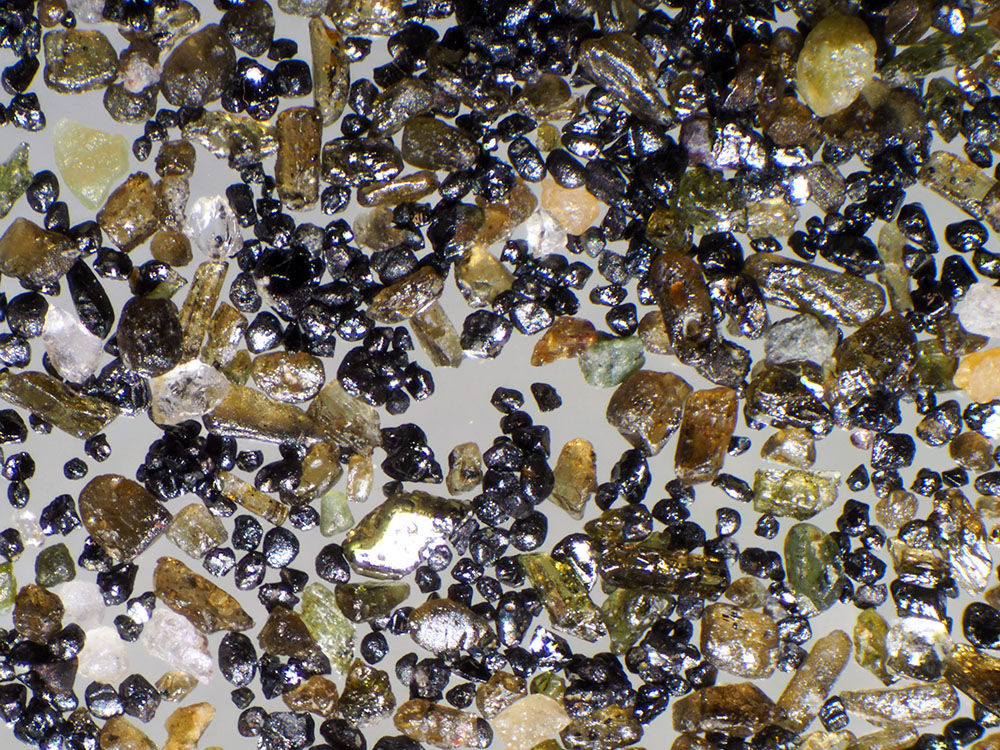 (北緯:35.691914、東経:140.737996)九十九里浜の東の端、刑部岬。週末には砂鉄“盗掘”の監視人がいることがあると聞いた。ただし、一人バケツ1杯程度の砂鉄(磁鉄鉱)は採取してもよいとか。掘ってみると黒い砂鉄層は何層もある。砂鉄の含有率はかなり高いようだ。この日は週末にもかかわらず大雨なので、監視人も観光客も誰もいない。この先長いこと、ここの砂鉄をたたら製鉄の材料として使っている。